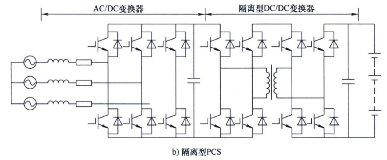相比之下,工频升压型双级PCS则通过在电池接入端配置双向DC/DC变换器,提高了电池组容量和增强了电压选择的灵活性。这种配置可以实现多组电池的分别独立控制,但成本相对较高,控制系统也更为复杂。根据DC/DC变换器的结构不同,双级PCS又可分为非隔离型与隔离型两种,其中隔离型双级PCS可以进一步提升电压变比,具有更宽的电池电压适应性。然而,大容量隔离型高升压比双向DC/DC变换器的设计难度大,主要难点包括高频变压器设计、系统绝缘、移相或串联谐振软开关、以及高功率密度设计等技术挑战。