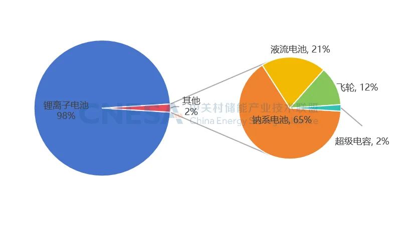 图 4 2025年一季度新增投运新型储能项目技术分布(MW%)
