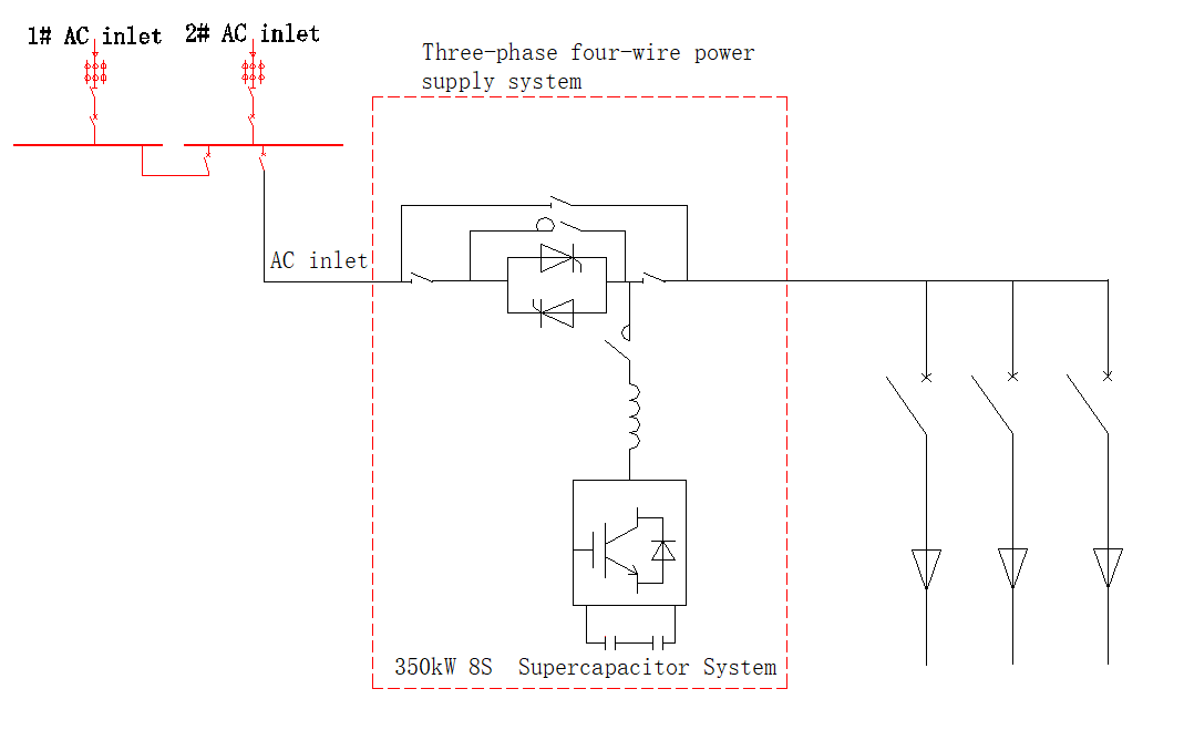 方案由一台INPAVC动态电压恢复器主机与一套350kW/8s超级电容储能系统构成。其中,储能系统采用1000V高压插箱模组的先进架构,由13个72V/283F标准插箱构成一个高达936V系统电压、容量为21.79F的超级电容簇,单簇可用电量高达3.79MJ,完美满足了350kW负载8s的能量需求。